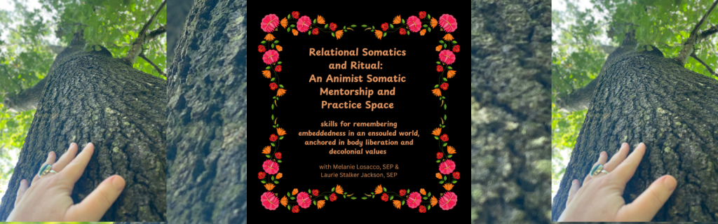 Our online membership, Relational Somatics and Ritual: An Animist Somatic Mentorship and Practice Space, is a place to join us and practice reciprocity, tending, unraveling, emerging.